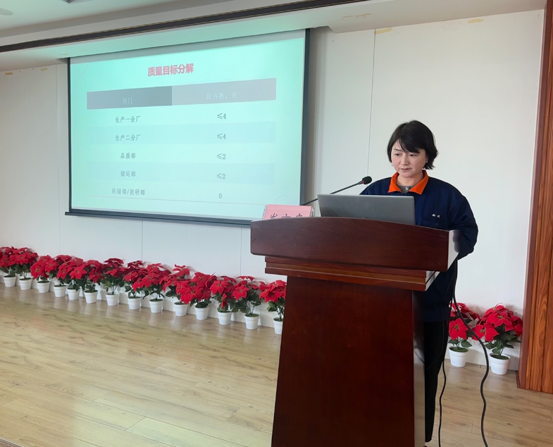 總經理在講話中充分肯定了2023年質量和創新工作做出的努力和取得的成績,從四個方面對來年質量、創新工作提了要求。一是強化團隊建設,質量和創新團隊要統一認識,能挑“硬擔子”、敢啃“硬骨頭”,勇于挑戰,攻堅克難,推動企業追求卓越,守正創新。二是強化制度執行,管理部門要敢于較真,嚴格監督考核,以GMP體系的實施為契機,進一步夯實基礎管理。三是保證資源投入,加快檢測、研發實驗室改造和設備設施提檔升級。四是各條線、各部門分廠,要以市場為導向,服務關口前移,管理重心下沉,精心、用心、細心、專心,竭誠為顧客提供優質的產品和服務。