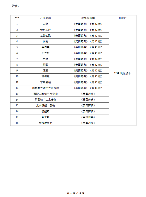 藥用輔料產(chǎn)品《美國藥典》質(zhì)量標(biāo)準(zhǔn)變更告知函: