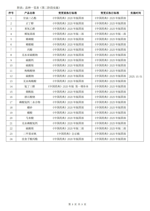 執行《中國藥典》2025 年版;此次 2025 年版藥典升級,不涉及產品工藝的變化。涉及標準變更工作已同步開展;此次變更涉及產品,將分兩個階段實施,具體各產品的實施時間詳見附表!